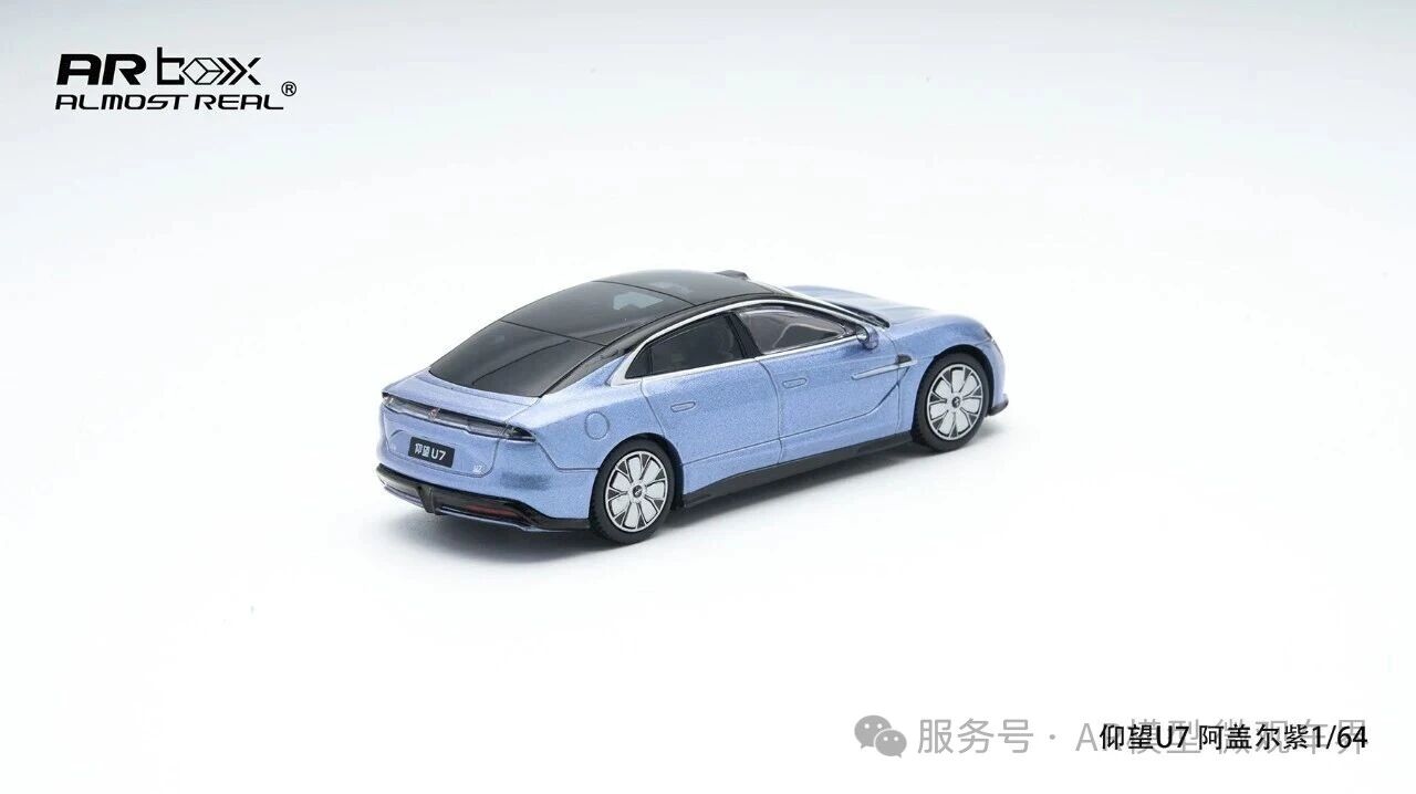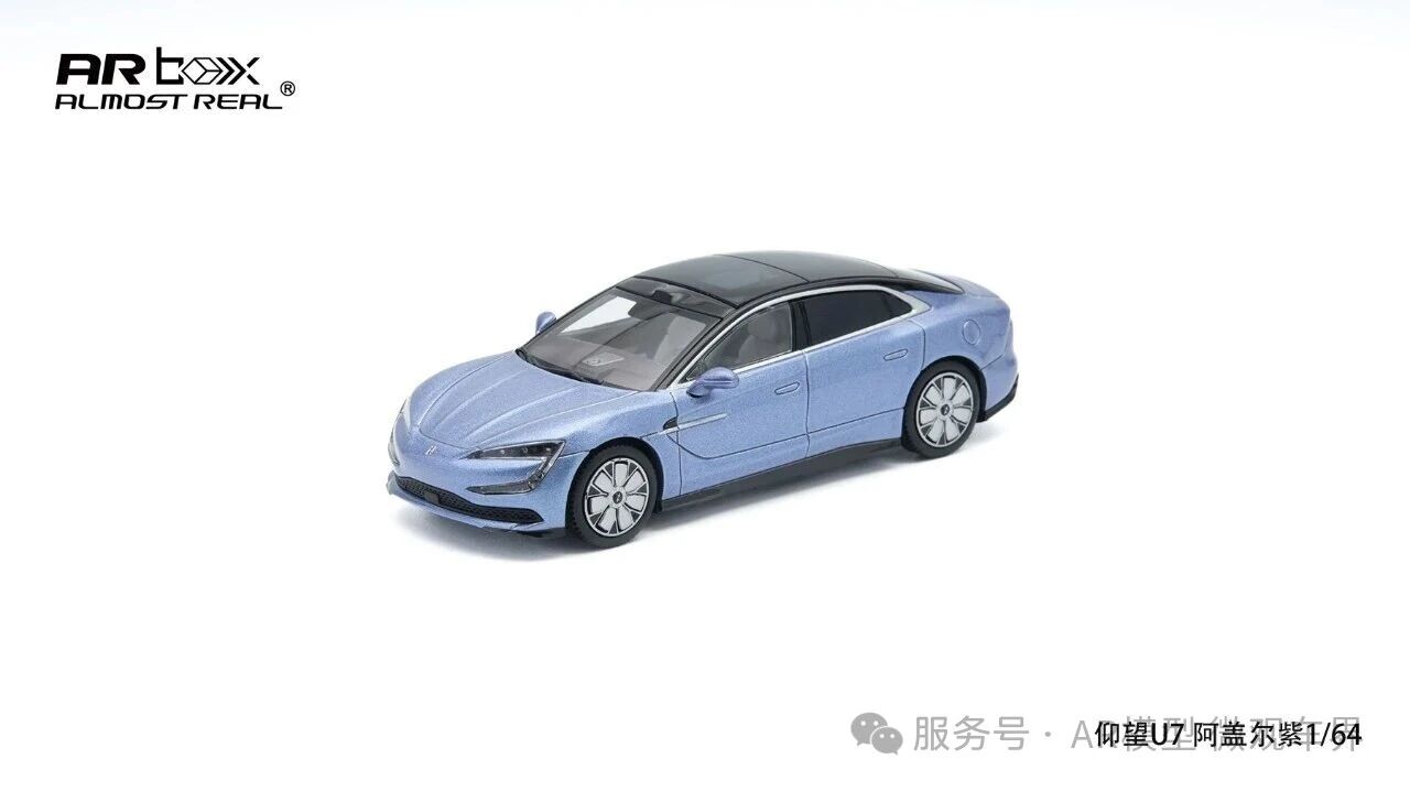 我们与仰望合作的首款上市产品,仰望U7 1/64将在本次展会首发销售,首先推出的是两个配色阿盖尔紫和金属黑,搭配减阻轮毂的版本。