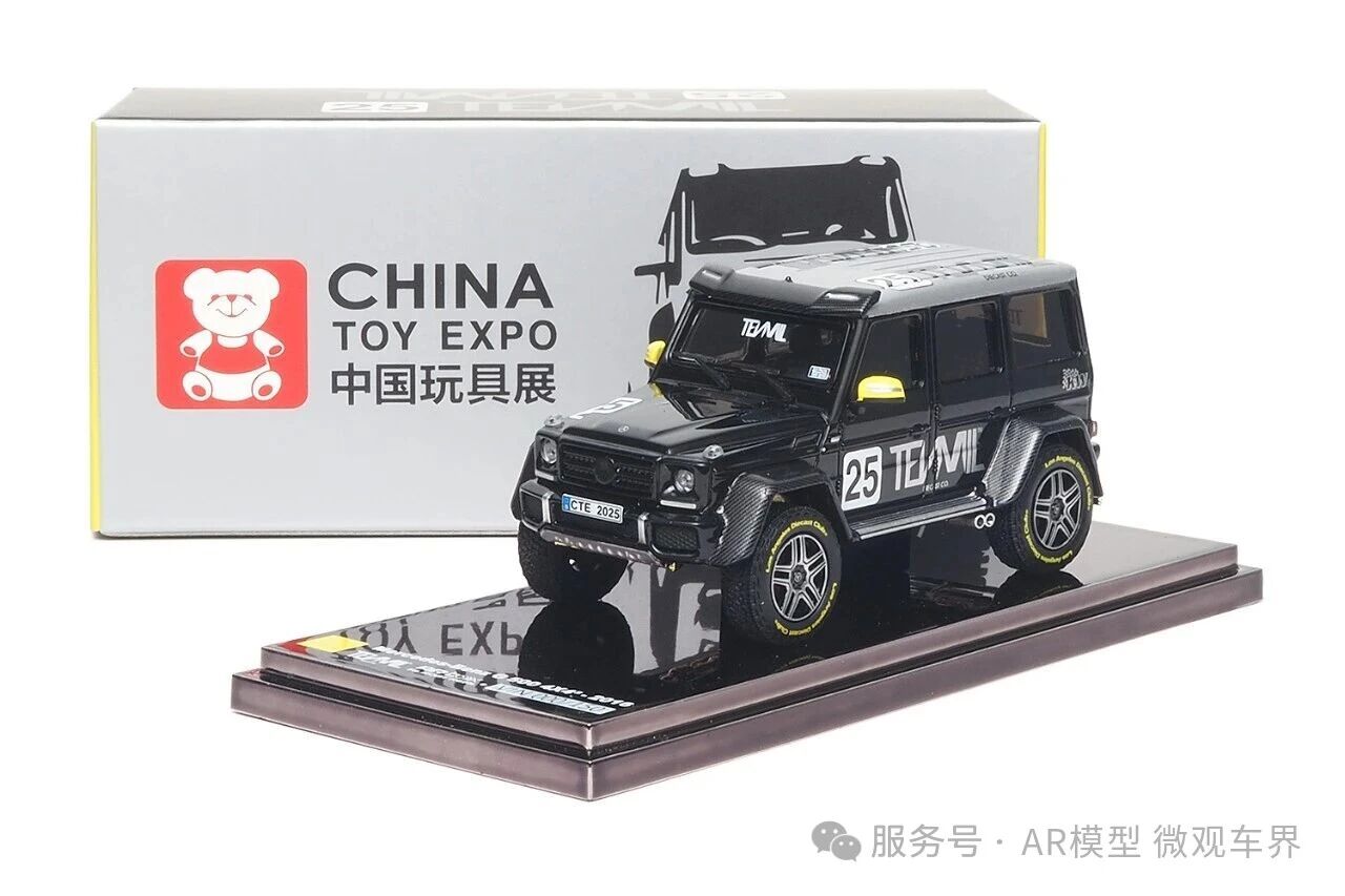 这款车的拉花由Los Angeles Diecast Club联合设计,车身编号25号代表此次CTE中国玩具展于2025年举办。梅赛德斯-奔驰 G 500 4X4²不同版本采用银色和黑色车身,其灵感来自于经典的勒芒Group C组别Sauber 梅赛德斯C9赛车。上海定制版车身为黑色,底盘采用合金材质,并配合了悬挂功能和TENMIL标志。